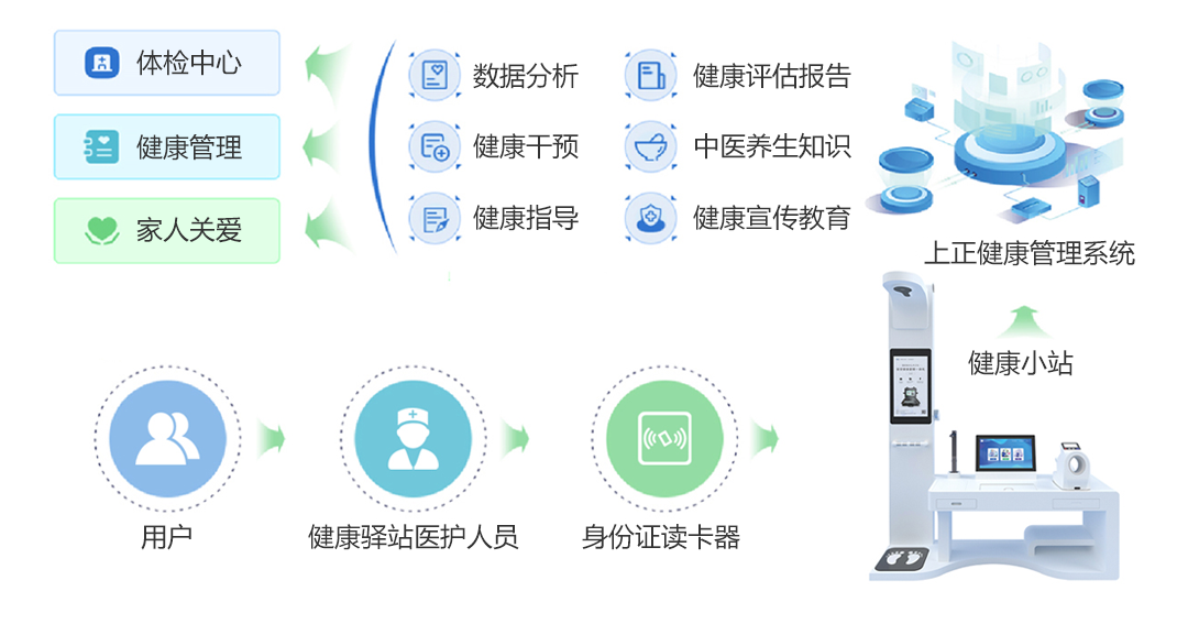 上正華瑞健康驛站智能體檢一體機適用于社區養老服務中心、養生會所VIP、會議營銷、社區、銀行VIP、保險公司VIP、電信移動聯通VIP及大企業為自己員工建立的健康檔案等